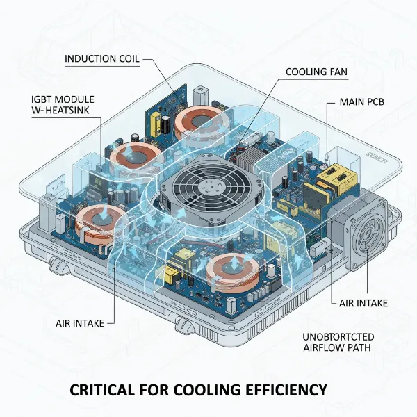 • Proper Pan Placement: Ensure pans are centered on the cooking zones for optimal and even heating. Using warped pans can lead to uneven heating or poor performance. [cite: 1 (search result 1)]