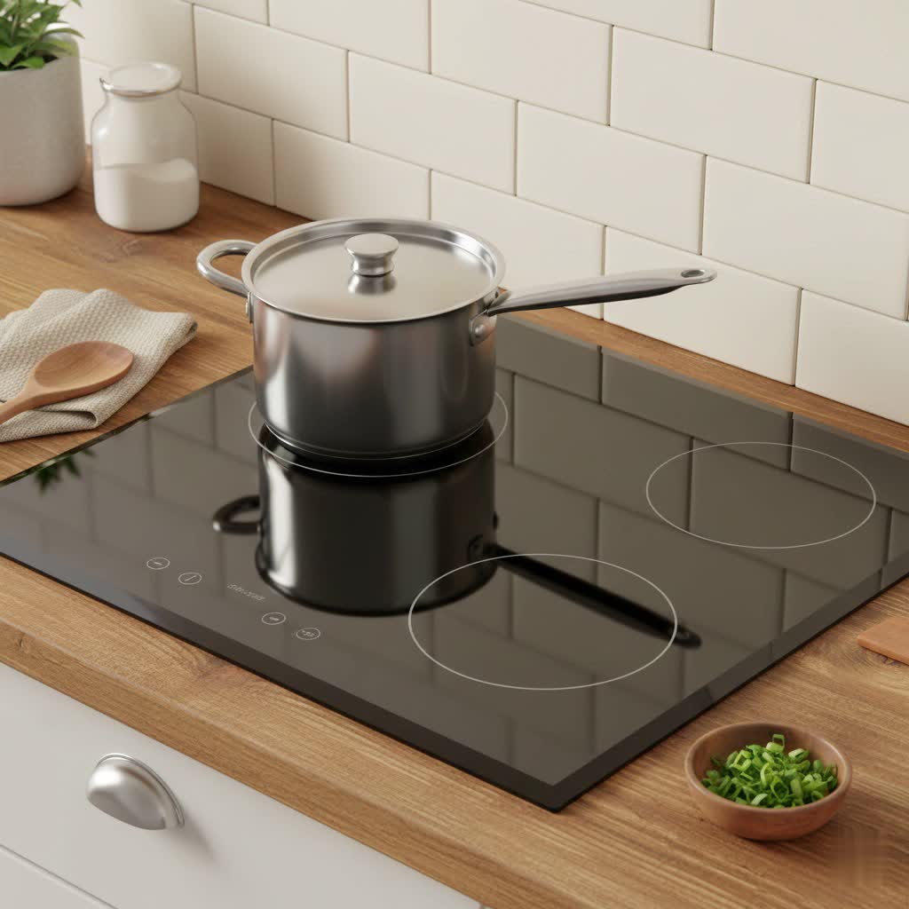 • Pan Detection: Cooktops will only activate when induction-compatible cookware is placed on a zone, often displaying an error if the wrong type of pan is used or if no pan is present.